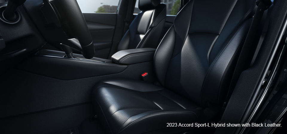 The Accord features a sleek new look, with available sport styling embodying its spirited on-road personality. Inside, you'll find a more comfortable experience, with new body-stabilizing seats and available heated and ventilated front seats with automatic climate control.
